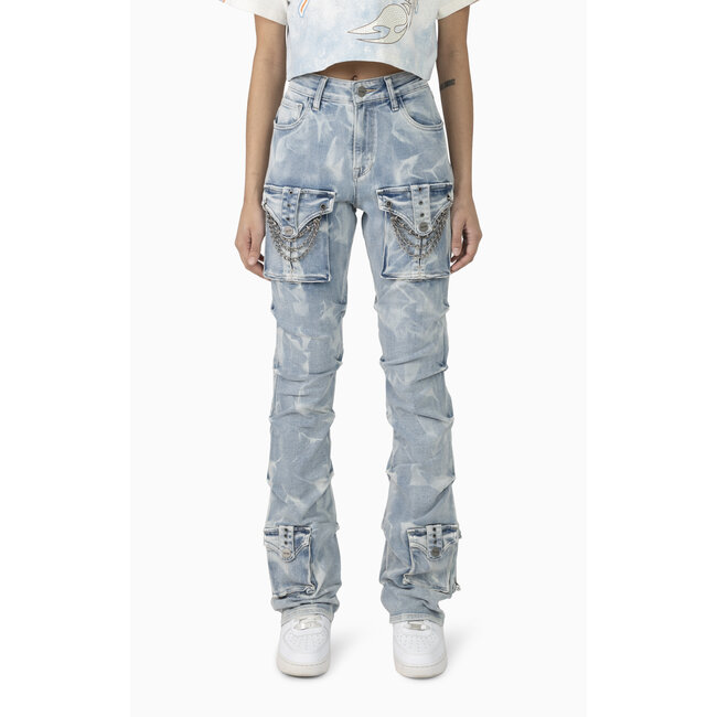 Smoke Rise High Rise Boot Jeans Chain Wave Blue
